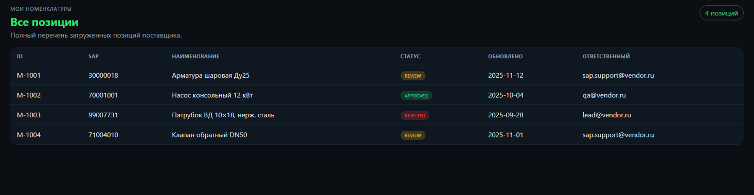 Автоматизированный процесс согласования и валидации номенклатурных позиций