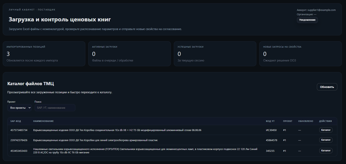 - Интерфейс для загрузки ценовых книг