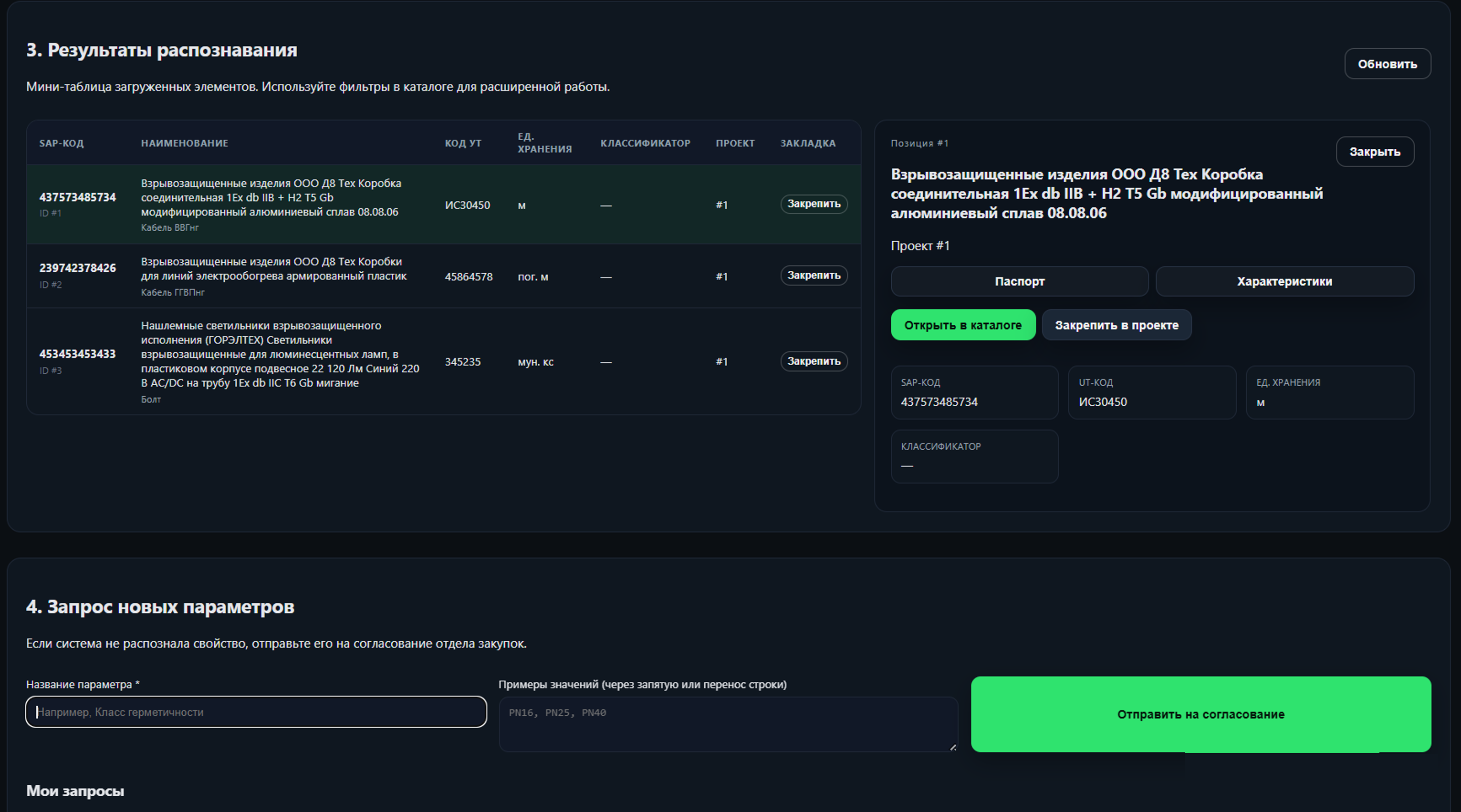 - Результаты распознования номенклатурных позиций